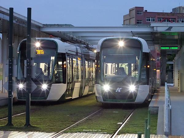 ↑頭班車發車前剛進哈瑪星站的兩班高雄輕軌