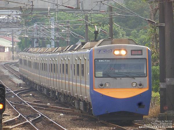 ↑1212次區間車,EMC734領頭,車尾EMC733